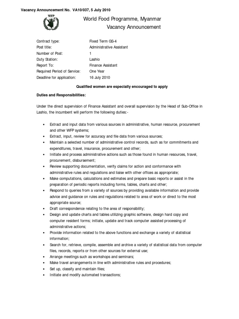 He/she might be responsible for checking data in addition to administrative tasks or running reports. To assist in the development, performance and maintenance of the financial activities of the organisation. For entry into data sheets To be successful as a finance assistant, you should have strong knowledge of bookkeeping and accounting principles, good organizational skills, and working knowledge of accounting software. Finance assistant ngo gross salary: Daily accounting danish refugee council (drc) Hr & finance assistant finance responsibilities include: The best administrative assistants are technically adept and socially competent. Learn about the key requirements, duties, responsibilities, and skills that should be in a finance assistant job description. Perform accounts payable functions o process all incoming invoices and distribute to appropriate staff for approval o verify completeness and accuracy of all vouchers, check requests, and employee expense reports o process weekly disbursements Perform routine calculations to produce analyses and reports as requested by the finance director help oversee and manage individual accounts If you have an accounting background and are interested in procedures like tax management and budget preparation, we'd like to meet you. Being a financial assistant (corporate) coordinates meetings and other communications between associates and others involved in deals.